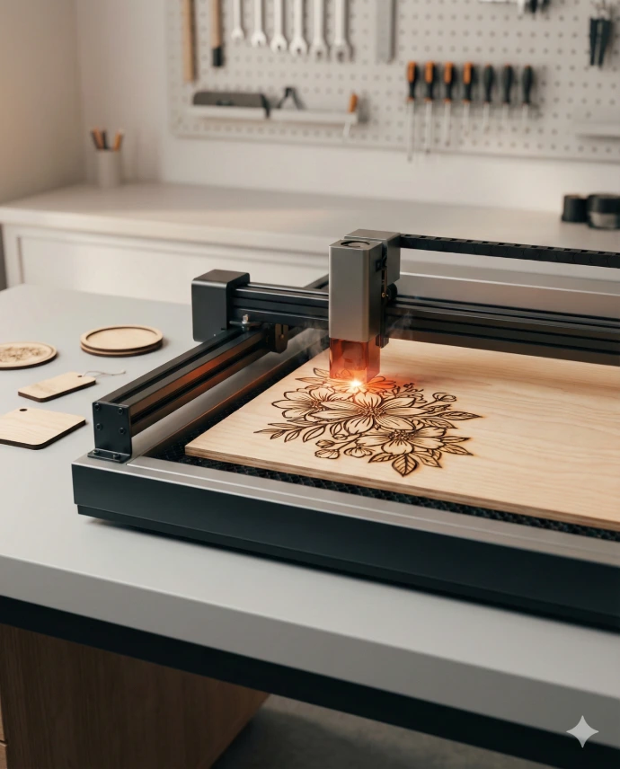 Precisie laserbewerking van hout en kunststoffen voor maatwerkprojecten, personalisatie en kleine producties.